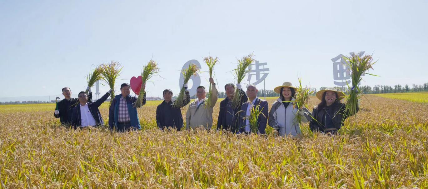 與會(huì)嘉賓們一起鮮割第一鐮6步鮮稻谷,體會(huì)豐收的喜悅