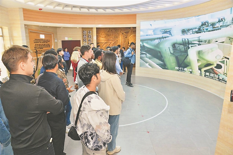 在哈爾濱汽輪機廠有限責(zé)任公司,留學(xué)生們深入車間一線,近距離觀察了汽輪機從原材料加工到成品組裝的全過程。