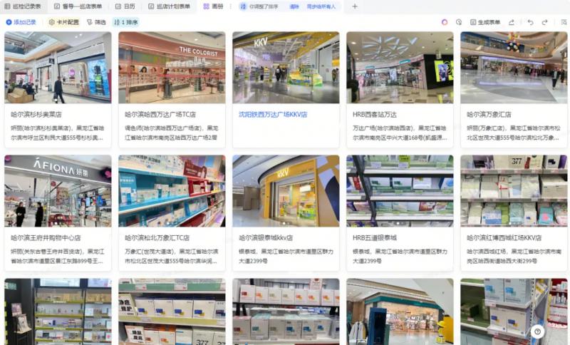 線下巡店工作能最大程度保障各終端貨品銷售質(zhì)量。過去,由于巡店工作涉及外出出差,巡店照片數(shù)據(jù)手機端無法操作整理匯總,影響問題處理時效且增加無用工作量。現(xiàn)在敷爾佳運用飛書表單移動端操作,隨時上傳巡店結(jié)果及照片,表格儀表盤視角可以查看數(shù)據(jù)并進行一段時間內(nèi)的環(huán)比、同比分析,基于數(shù)據(jù)分析做任務(wù)下達,一次巡檢從發(fā)現(xiàn)問題到整改問題的全流程都能包攬,對于每位巡檢員來說,每天至少節(jié)省2.5小時數(shù)據(jù)統(tǒng)計時間,同時更清晰的了解每個督導(dǎo)的外出工作情況 。此外,查貨溯源沒有系統(tǒng)的數(shù)據(jù)存檔,多個渠道數(shù)據(jù)無法同步,無數(shù)個sheet篩選查詢數(shù)據(jù),容易出錯。現(xiàn)在,運用多維表格協(xié)同操作,多個維度查看所需數(shù)據(jù),所有查貨情況能被沉淀和實時查看。
