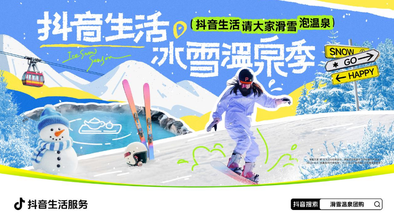 隨著全國各地降溫,“冰雪經(jīng)濟”逐漸升溫。10月22日至12月22日,抖音生活服務(wù)發(fā)起“抖音生活冰雪溫泉季”活動,重點圍繞哈爾濱、長春、沈陽等城市,聯(lián)動政府、明星達人、商家線上推介當(dāng)?shù)囟疚穆觅Y源,聚合物美價優(yōu)的冬季吃喝玩樂商品;線下打造雪人城市生活圈、抖音生活市集等,吸引用戶出游打卡,激發(fā)冰雪消費熱情,助力冰雪城市出圈。