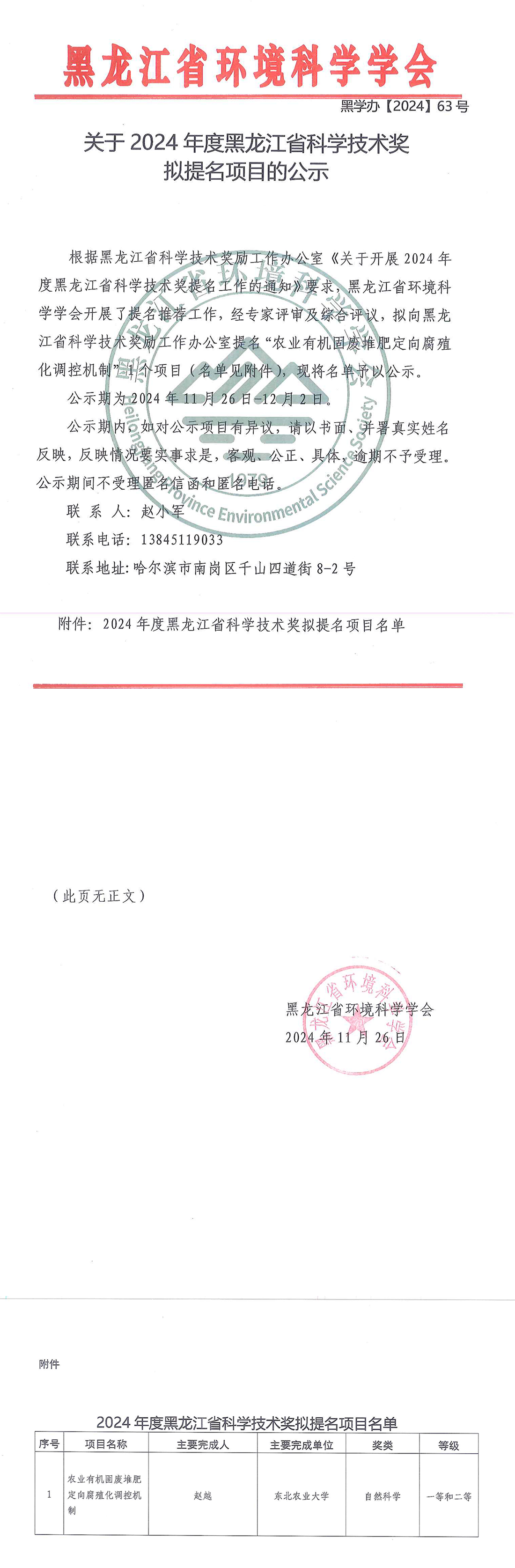 關(guān)于2024年度黑龍江省科學(xué)技術(shù)獎擬提名項目的公示