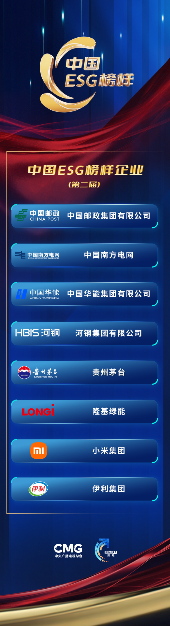 當(dāng)天,中央廣播電視總臺(tái)財(cái)經(jīng)節(jié)目中心聯(lián)合國務(wù)院國資委、全國工商聯(lián)、中國社科院國有經(jīng)濟(jì)智庫、中國企業(yè)改革與發(fā)展研究會(huì)等權(quán)威機(jī)構(gòu)舉辦了《第二屆“ESG榜樣”盛典》,這8家企業(yè)均成功登榜“ESG榜樣企業(yè)”,成為ESG領(lǐng)域的新領(lǐng)軍者。