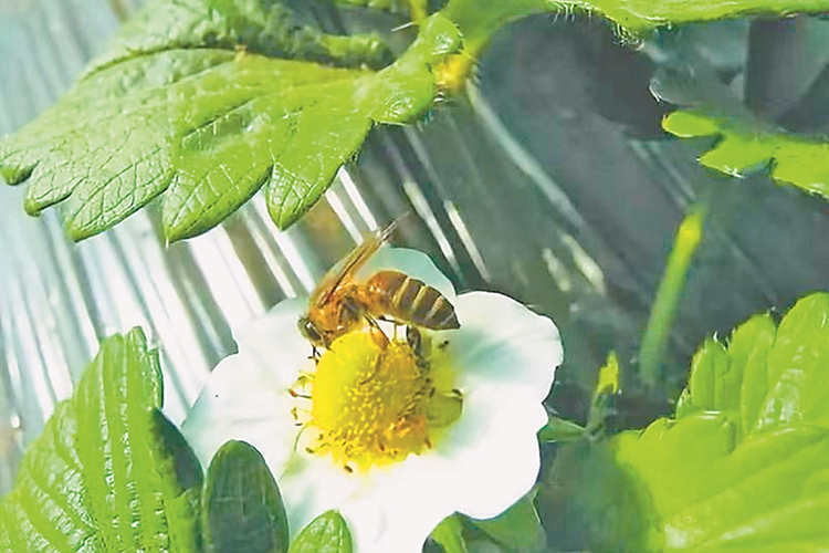 “今年,我種了兩棟草莓,棚內(nèi)還放養(yǎng)了蜜蜂,不但解決了冬季草莓授粉問題,還使草莓上市時間提前了一個星期。”寒冬時節(jié),在雙鴨山農(nóng)場翠博園“果蔬王國”基地內(nèi),草莓陸續(xù)進入開花期。看著一群小蜜蜂在花叢中辛勤勞動,種植戶殷濤喜高興地跟記者算起經(jīng)濟賬:“等元旦前上市,將秒變市場‘團寵’,預(yù)計每畝收入10萬元左右?!?017年以來,雙鴨山農(nóng)場共搭建10余棟日光溫室,打破傳統(tǒng)“春種秋收”的種植觀念,擴大棚室果蔬產(chǎn)業(yè),累計帶動職工群眾增收200余萬元。