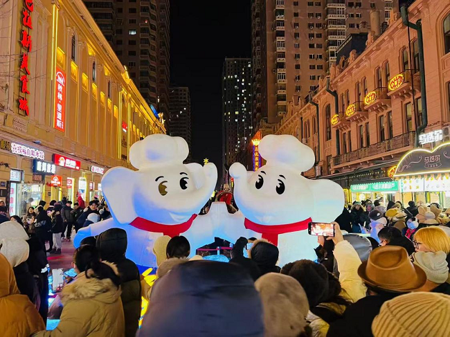 除了“白象”標(biāo)志性小象IP格外吸睛之外,因其與“對象”諧音的巧妙設(shè)計,也吸引著往來行人紛紛駐足。雪雕前人潮涌動,不少市民游客在“對象”前合影留念。這一創(chuàng)意不僅為游客增添別樣的溫暖與歡樂,也在社交媒體掀起一陣“找對象”的熱潮?;顒悠陂g,“對象雪雕走紅哈爾濱”的話題登上熱搜榜。不少網(wǎng)友調(diào)侃:“這就去哈爾濱找對象。”也有人表示,看完小象雪雕,感覺爾濱的冬天都充滿了浪漫的氣息。
