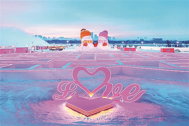 日前,坐落于哈爾濱大劇院西南江面的“爾濱之心歡樂(lè)島”開園。這是一座以“愛”為名設(shè)計(jì)建造的冰雪主題樂(lè)園,總面積約60萬(wàn)平方米,共有56處心形景觀,還有“冰封玫瑰”和大雪人,“島”內(nèi)愛意滿滿,吸引了不少游客前來(lái)打卡拍照。