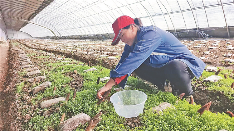 春寒料峭,牡丹江市陽(yáng)明區(qū)唐櫻園生態(tài)農(nóng)場(chǎng)二期項(xiàng)目的6個(gè)棚室內(nèi)一派生機(jī)盎然,經(jīng)過(guò)3個(gè)月的精心培育,一朵朵形似羊肚的珍稀菌菇破土而出,為市民餐桌增添了一抹“春日鮮味”。