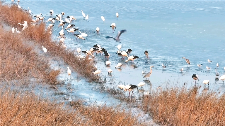 不僅東方白鸛,還有越來(lái)越多的珍稀鳥(niǎo)類(lèi)和野生動(dòng)物在此安家落戶(hù),生物多樣性日益豐富。張瑩攝