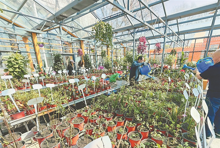 3月31日,黑龍江中醫(yī)藥大學校園內(nèi),眾多市民在寬敞明亮的溫室里參觀。