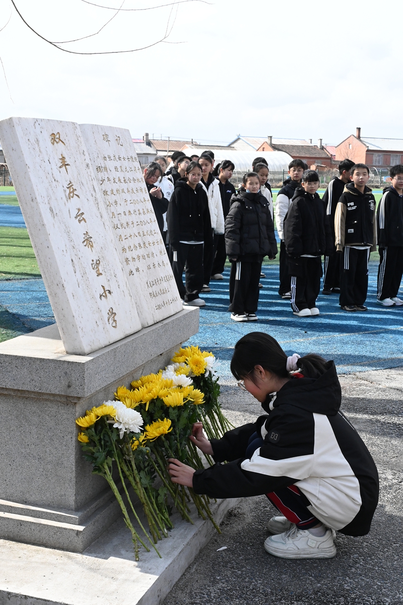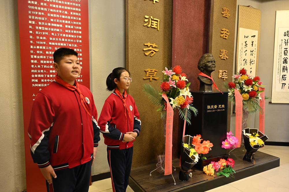 活動中,黨員和少先隊員代表向老黨員張慶云同志紀(jì)念碑敬獻(xiàn)鮮花,并全體緬懷。團(tuán)省委、省捐助中心、哈爾濱市注冊會計師行業(yè)黨員代表為學(xué)生們送去了圖書和學(xué)習(xí)用品。