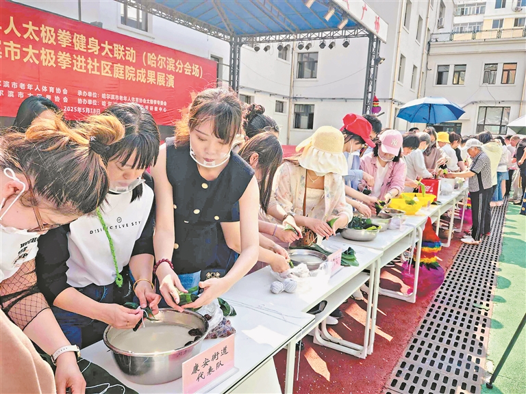 5月27日,在端午節(jié)即將來(lái)臨之際,一場(chǎng)別開生面的包粽子大賽在哈爾濱市道里區(qū)撫順社區(qū)舉行?,F(xiàn)場(chǎng)粽葉飄香,一片歡聲笑語(yǔ)。