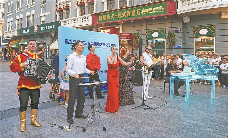 6月22日晚,由省文旅廳主辦的黑龍江省第三屆中俄地方文化藝術(shù)季——“街頭藝術(shù)之遇見俄羅斯”演出活動在中央大街啟動。來自俄羅斯的表演團隊,通過歌唱、舞蹈、音樂等多種藝術(shù)形式,為觀眾呈現(xiàn)了精彩演出。