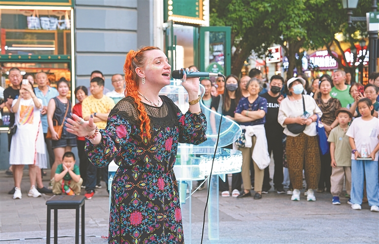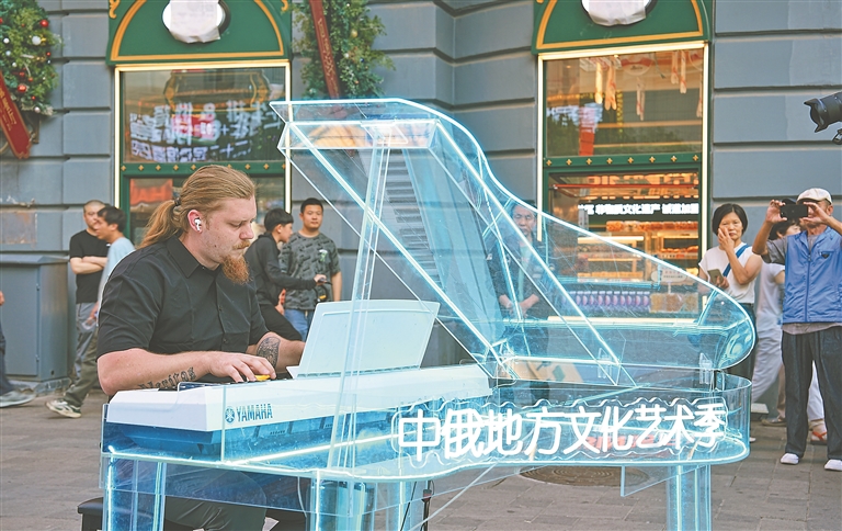 中央大街一隅,熱情洋溢的俄羅斯演員或奏響悠揚的巴揚樂曲,讓充滿異域風情的旋律在空氣中流淌;或以靈動的舞姿演繹俄羅斯文化,用熱情奔放的節(jié)奏點燃現(xiàn)場氣氛。市民和游客近距離感受俄羅斯文化的魅力。
