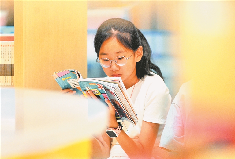 隨著暑假的到來,哈爾濱市南崗新華書店成為眾多學(xué)生的熱門打卡地,每天都有許多孩子來到書店里“充電”。書架上,各種各樣的圖書琳瑯滿目,其中科普、科幻題材的書籍尤其受到學(xué)生們歡迎。挑選出自己喜歡的圖書后,有的孩子讓家長(zhǎng)把書買回家慢慢看,也有的孩子直接坐在書店里的座位上閱讀。