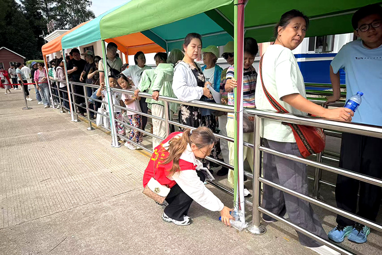 暢通“出行路”:交通協(xié)管繪就平安景。在石林景區(qū)入口,志愿者與交警并肩而立,化身“文明引導(dǎo)員”。他們有序引導(dǎo)游客排隊(duì)乘車,耐心解答路線咨詢,及時(shí)勸導(dǎo)不文明行為。烈日下堅(jiān)守的身影,成為景區(qū)一道流動(dòng)的風(fēng)景線。通過(guò)協(xié)同聯(lián)動(dòng),有效緩解高峰時(shí)段交通壓力,提升了游客出行體驗(yàn),也展現(xiàn)了基層治理的溫度與效能。活動(dòng)累計(jì)出動(dòng)志愿者8人次,服務(wù)時(shí)長(zhǎng)超400小時(shí),引導(dǎo)游客有序乘車8000余人次,勸導(dǎo)不文明行為20余起,景區(qū)交通秩序明顯改善。