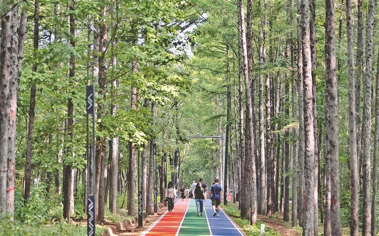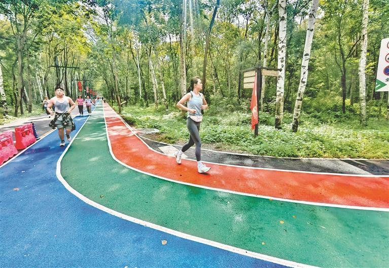 一位在這里跑步的附近居民說,林間空氣清新,負(fù)氧離子含量高,對(duì)人體有很大益處。一邊跑步健身,一邊觀賞林間美景,感覺舒服又愜意。