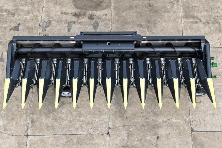 現(xiàn)場(chǎng)會(huì)上,最讓人駐足的是現(xiàn)場(chǎng)展示的意大利卓收割臺(tái), 此次引入的卓收割臺(tái),其自動(dòng)摘穗板每行單元可實(shí)現(xiàn)自動(dòng)開合且?guī)в袦p震功能,能根據(jù)玉米粗細(xì)靈活調(diào)節(jié)間隙,有效解決了其他品牌割臺(tái)無法對(duì)每行每株精準(zhǔn)適配的問題;同時(shí),收割臺(tái)的拉莖輥長(zhǎng)度較其他品牌割臺(tái)增加 8 公分,讓割臺(tái)更貼合地面,在收獲倒伏玉米時(shí)作業(yè)角度更優(yōu),大幅減少 “跳棒” 現(xiàn)象。此外,卓收割臺(tái)的拉莖輥及刀片采用螺栓固定設(shè)計(jì),可隨時(shí)調(diào)整位置或更換部件,避免了其他割臺(tái)因拉莖輥及刀片為一體式設(shè)計(jì)、損壞后需整體更換的弊端。