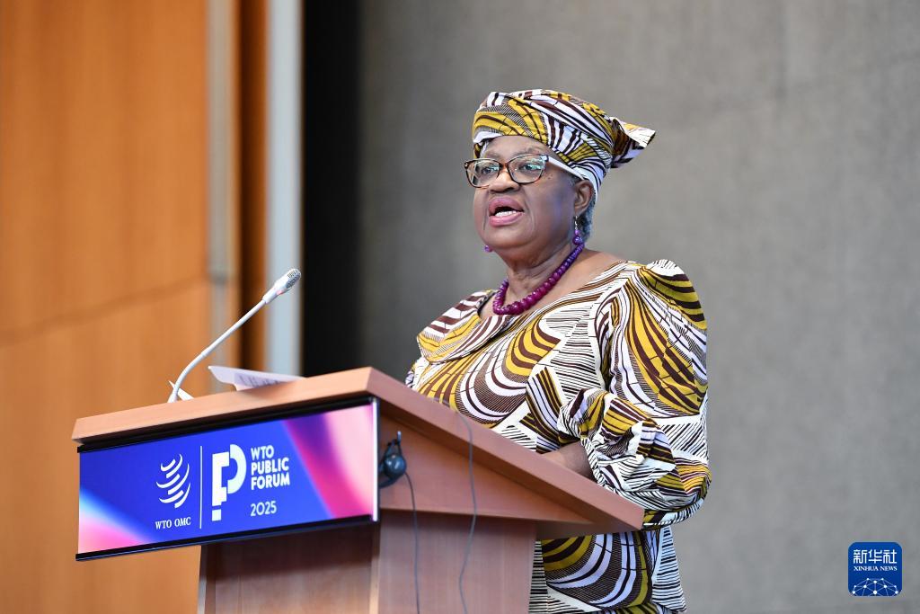 9月17日,在瑞士日內(nèi)瓦世貿(mào)組織總部,世貿(mào)組織總干事伊維拉在《2025世界貿(mào)易報告》發(fā)布會上講話。新華社記者 連漪 攝