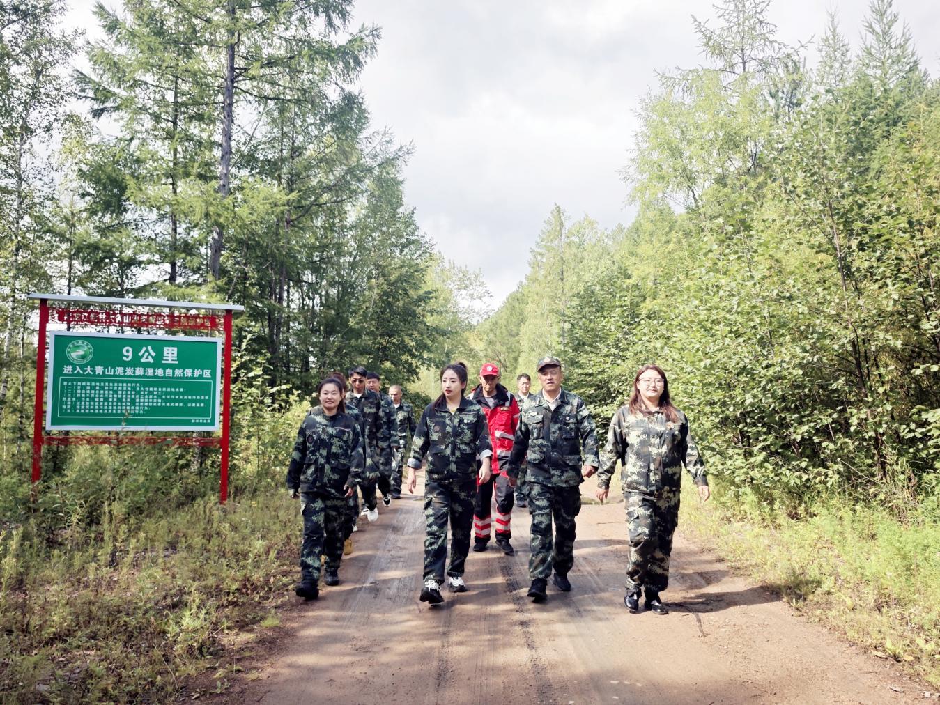 塔爾根林場(chǎng)機(jī)關(guān)工作人員在管護(hù)員帶領(lǐng)下開(kāi)展巡護(hù)實(shí)踐(李輝 攝)