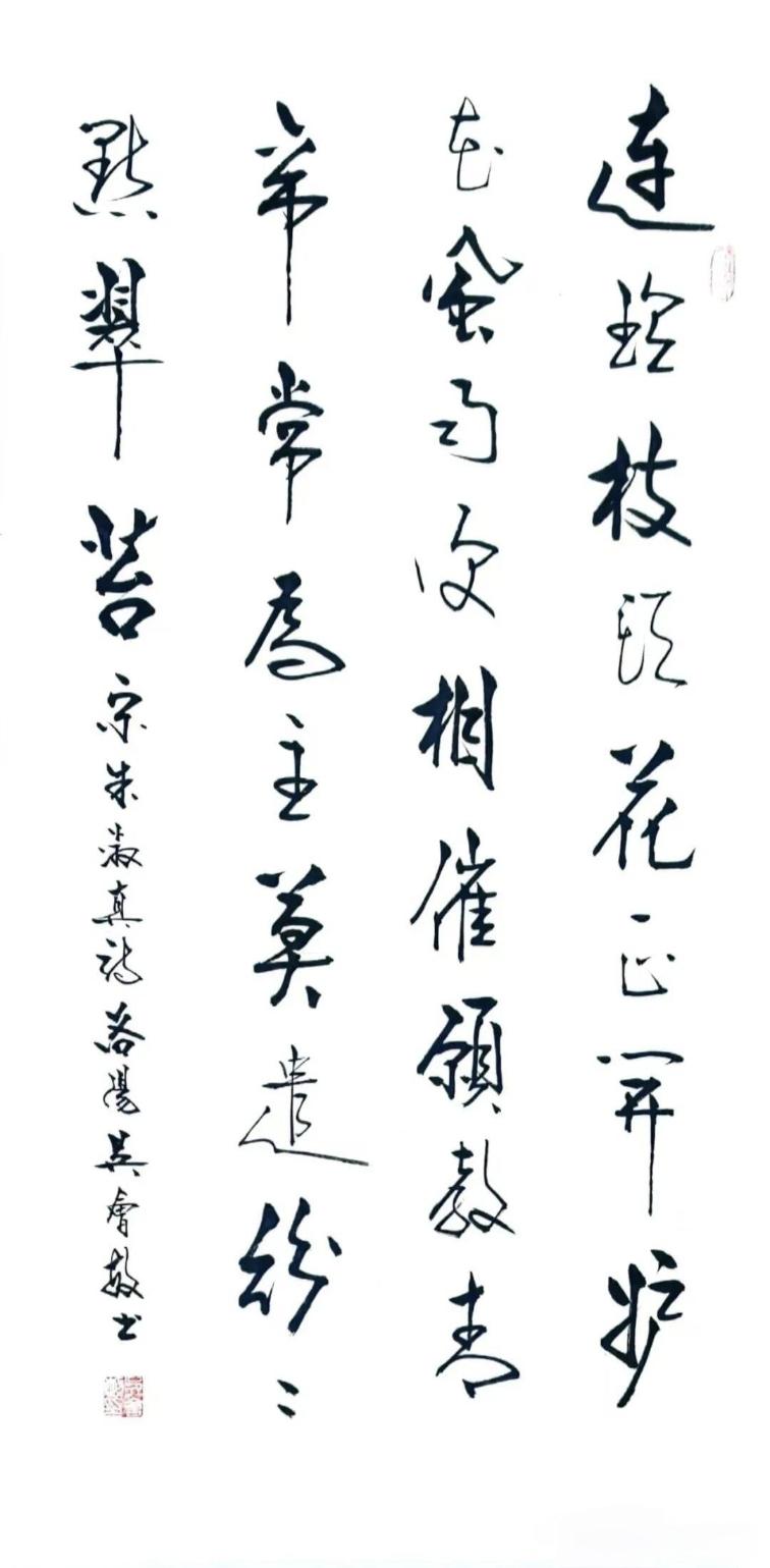 我想用著名書(shū)法家蘇士澍、詞作家歐榮生的《寫(xiě)好中國(guó)字,做好中國(guó)人》歌詞收尾:寫(xiě)好中國(guó)字,做好中國(guó)人,寫(xiě)字要用心,做人要真誠(chéng),一字一世界,一筆一乾坤。祝愿吳會(huì)敏先生書(shū)法藝術(shù)長(zhǎng)青。將吳先生書(shū)法作品附上,供廣大讀者鑒賞。