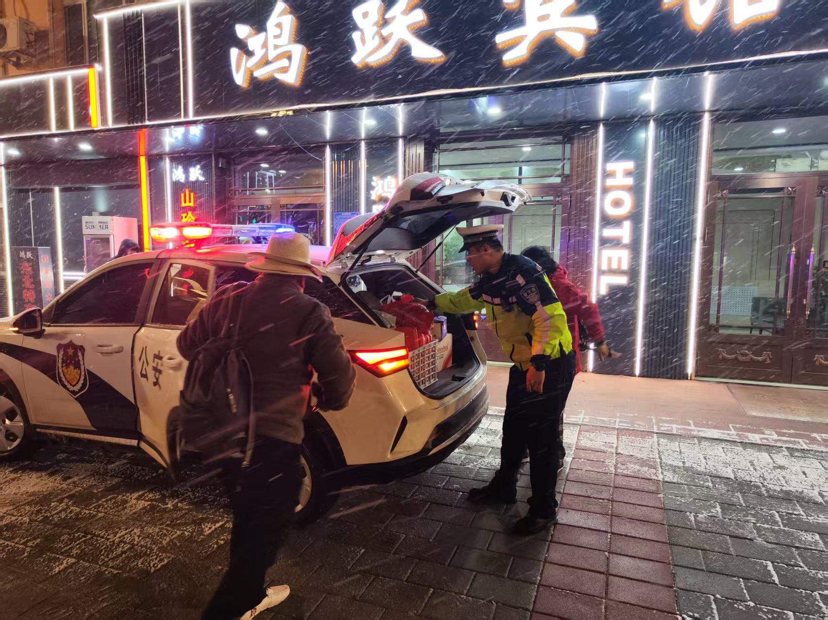 了解到這一情況后,民警立即安撫游客的情緒。由于路況不佳,為確保安全,民警幫助二人聯(lián)系呼瑪縣住宿并送到住處。同時,民警叮囑司機,遇到降雪天氣,務(wù)必控制車速、減速慢行,以免發(fā)生意外。