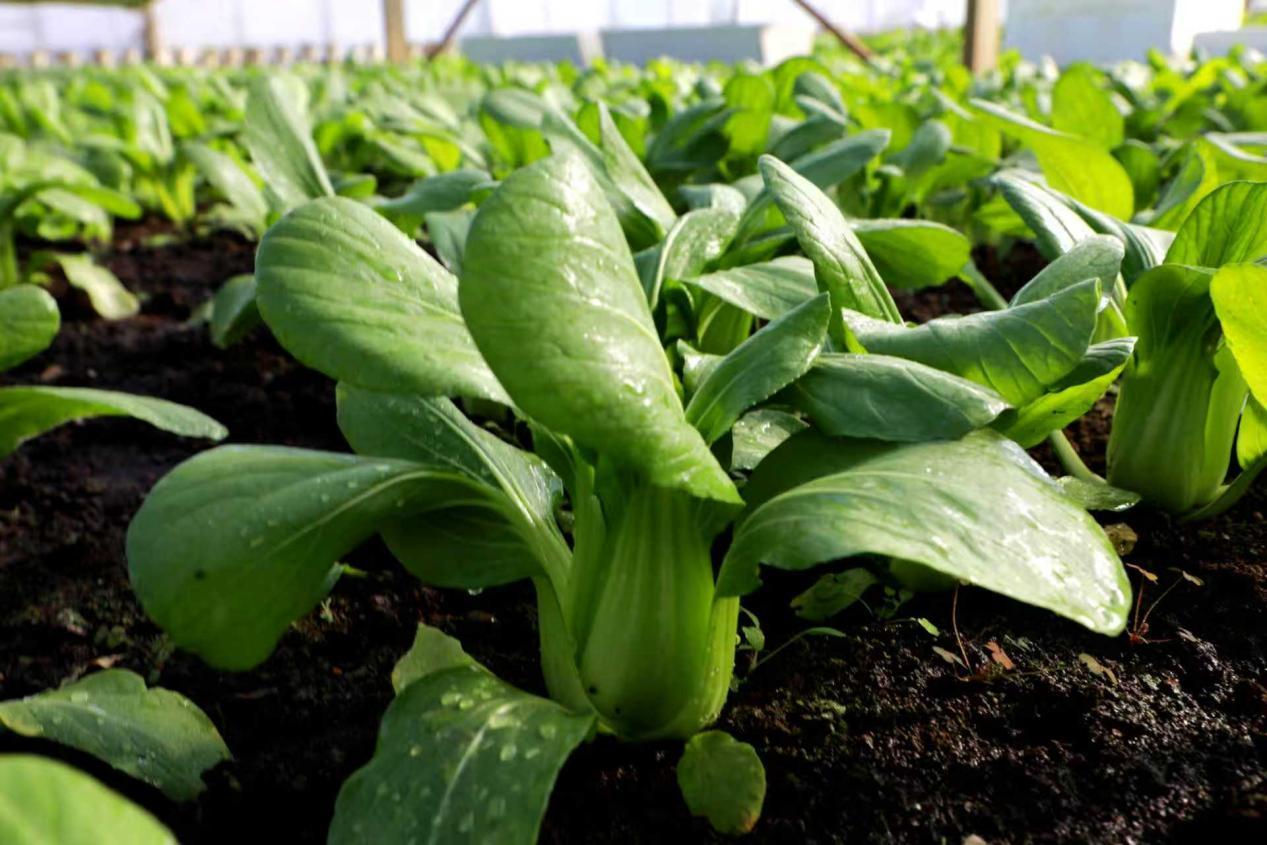阿木爾林業(yè)局中心苗圃利用藍(lán)莓園智能連棟溫室種植的反季節(jié)蔬菜(王力 攝)