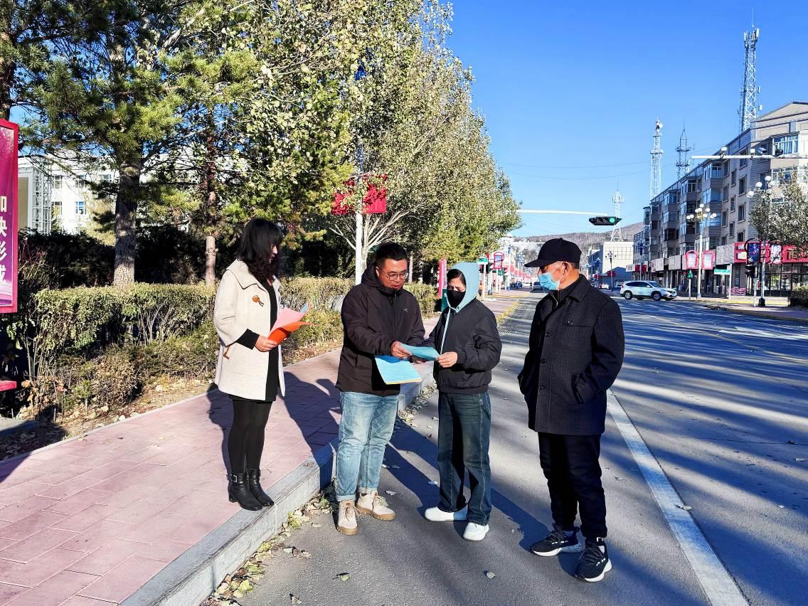 林業(yè)局工作人員向過(guò)往群眾發(fā)放宣傳資料(常鑫 攝)