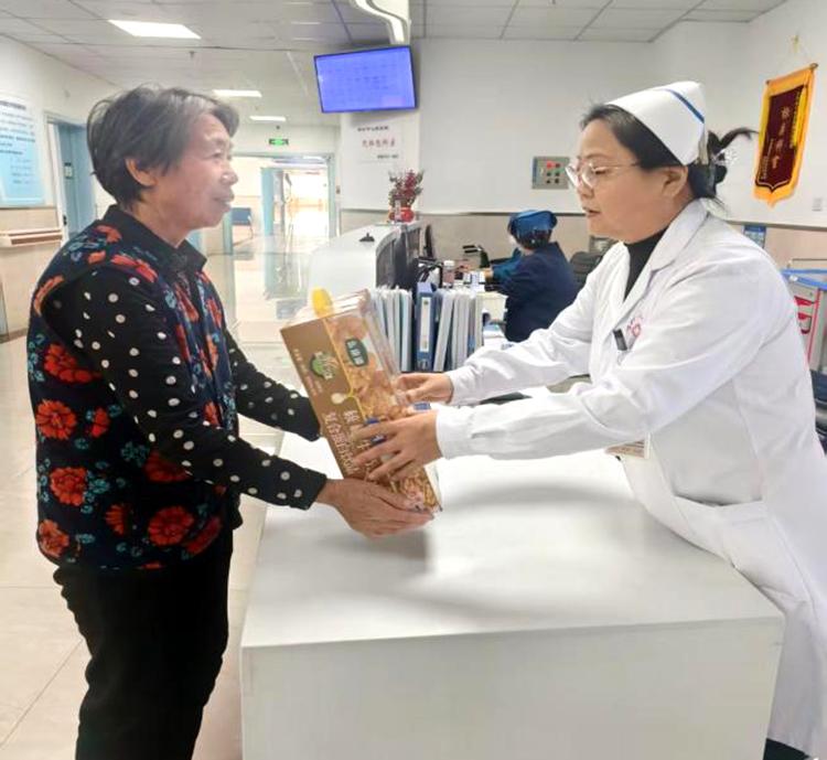 禮品雖小,情意濃重。開展活動(dòng)期間,醫(yī)護(hù)人員們帶著精心準(zhǔn)備的小禮品,走進(jìn)每一位60歲以上老年患者的病房。這些小禮品雖然價(jià)格并不昂貴,但卻飽含著對(duì)患者的深深祝福。柔軟舒適的保暖襪,為患者在漸冷的霜降時(shí)節(jié)增添一份溫暖;營(yíng)養(yǎng)豐富的滋補(bǔ)品,助力患者增強(qiáng)身體抵抗力;寓意吉祥的平安符,寄托著對(duì)患者早日康復(fù)的美好期許。當(dāng)醫(yī)護(hù)人員將一份份小禮品送到患者手中時(shí),患者們的臉上都洋溢著驚喜與感動(dòng)的笑容,紛紛對(duì)科室的貼心關(guān)懷表示感謝?;颊邉⒁碳?dòng)地說:“在這個(gè)特殊的節(jié)日里,收到你們送的禮物,心里特別溫暖”。