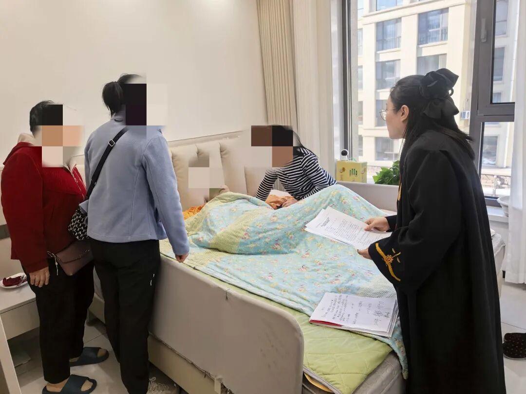 開庭當天,干警們一進老人家門,就忙著搭建“臨時法庭”;法官沒有用急促的問話推進流程,反而把語速放慢了兩倍,拉著老人的手耐心傾聽——這份“把當事人當家人”的細致,漸漸融化了老兩口心中的芥蒂,讓他們愿意敞開心扉溝通。調(diào)解結(jié)束后,法官特意蹲在張爺爺?shù)牟〈策叾冢骸昂罄m(xù)的法律文書我們會直接送過來,您和阿姨要是有任何疑問,隨時給我們打電話,不用來回跑法院?!甭牭竭@話,張爺爺看著干警們收拾東西的背影,渾濁的眼睛里忽然泛起了微光,他輕輕吐出兩個字:“謝謝”。這簡單的兩個字,藏著老人及家人對“司法不缺位”的深深感激,更映出了人民群眾對“司法為民”的熱切期盼。