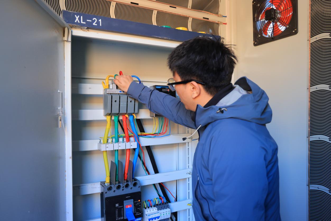 “這是一套完全獨(dú)立的孤島型微電網(wǎng),它不與大電網(wǎng)相連,通過自主發(fā)電與儲能實(shí)現(xiàn)供電。我們配置了150千瓦光伏陣列、兩臺10千瓦風(fēng)力發(fā)電機(jī)組,并配套低溫適配型儲能電池及保溫系統(tǒng),同時搭載了協(xié)調(diào)運(yùn)行與能量管理系統(tǒng),可實(shí)現(xiàn)24小時連續(xù)、穩(wěn)定供電。”哈爾濱工業(yè)大學(xué)電氣工程及自動化學(xué)院博士研究生周洋介紹。