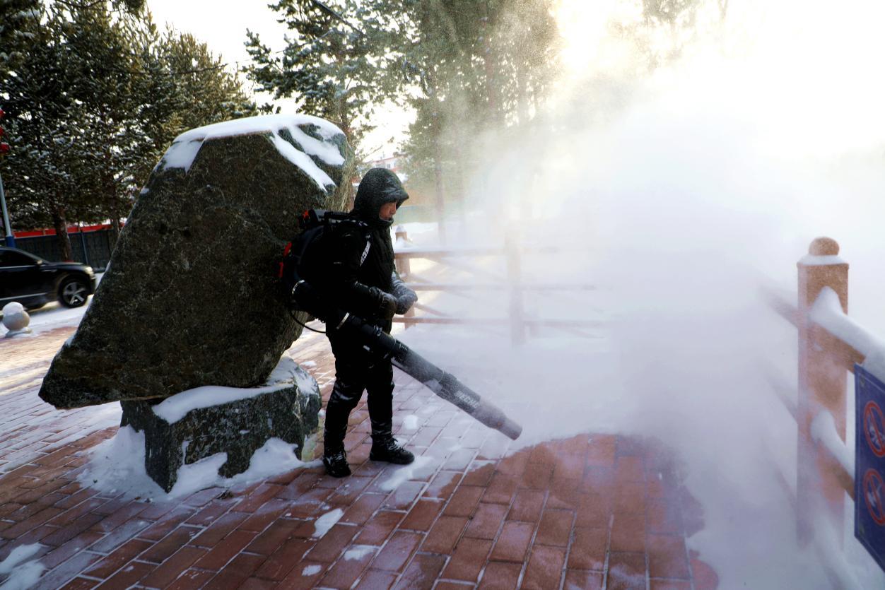 早晨7時(shí)天剛亮,中華路、西華路等主次干道、背街巷道及賓館、公園、居民樓區(qū)已處處是忙碌身影。大型清雪機(jī)械開(kāi)足馬力穿梭作業(yè),高效清除主干道厚積雪。手持鏟子、雪鍬的清掃職工俯身鏟除殘留積雪,有的巧用風(fēng)力滅火機(jī)清理人行道路面浮雪,默契配合打通清雪“最后一米”。凜冽寒風(fēng)中,大家不顧嚴(yán)寒、干勁十足,額間汗水與林間霧氣交織,構(gòu)成冬日里最溫暖的風(fēng)景線。
