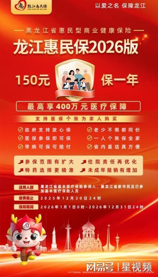 “龍江惠民保2026版”參保通道僅剩最后五天,將于2025年12月20日24時(shí)正式關(guān)閉。凡黑龍江省基本醫(yī)保參保人,只需通過(guò)“龍江惠民保”微信公眾號(hào)即可參保,每人每年150元,最高享400萬(wàn)元醫(yī)療保障。
