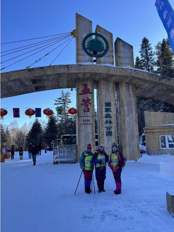 伊春市擁有83.8%的森林覆蓋率,冬季的小興安嶺林海雪原與霧凇奇景交相輝映,為徒步活動(dòng)提供了得天獨(dú)厚的環(huán)境。本次五營國家森林公園路線全長(zhǎng)17公里。從五營景區(qū)大門出發(fā),一路穿越冰雪覆蓋的林海秘境。沿著步道前行,松香橋橫跨在覆雪的溪流之上,橋面鋪著防滑的粗砂,腳下是咯吱作響的積雪,構(gòu)成一幅靈動(dòng)的冬日?qǐng)D景。行至館陶森林浴場(chǎng),這里滿是松針與冰雪的清新氣息,仿佛洗凈了所有疲憊。繼續(xù)向黑瞎子嶺行進(jìn),海拔緩緩升高,視野也愈發(fā)開闊,層次分明,雄渾壯闊。最終抵達(dá)天賜湖終點(diǎn),湖面早已結(jié)冰,湖邊樹木與天空的藍(lán)天白云相映成趣,宛如一幅靜止的油畫,讓人心曠神怡。