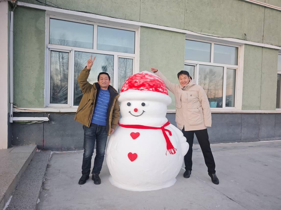 活動中,林場干部職工分工協(xié)作,有的手持鐵鍬鏟起蓬松的積雪,精準(zhǔn)填入雪人模具,用力按壓緊實,確保雪人身軀穩(wěn)固有型;有人手持小鏟子,細細修整雪人的輪廓,讓雪人的外觀更加美觀......鮮紅的圍巾繞在雪人脖頸,在白雪的映襯下格外耀眼,彩色涂料則成了創(chuàng)意的畫筆,大家或勾勒出彎彎的微笑嘴角,或點上心形的紐扣,給雪人增添了幾分俏皮與可愛。經(jīng)過大家的共同努力,一個個憨態(tài)可掬的“白胖子”便悉數(shù)亮相,成為林場冬日里一道獨特的風(fēng)景線。