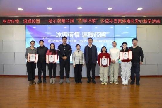 此次哈爾濱第42屆“四季沐歌”公益冰雪集體婚禮愛(ài)心助學(xué)行動(dòng)創(chuàng)新性地將浪漫婚禮與公益助學(xué)相結(jié)合,讓新人們?cè)谑斋@幸福的同時(shí)也成為公益的傳播者,用愛(ài)心架起校園與社會(huì)的橋梁,為這座浪漫冰城增添了溫暖底色。參與活動(dòng)的新人代表表示:“能在這座城市許下一生誓言,又能在人生重要時(shí)刻為孩子們做點(diǎn)實(shí)事,感覺(jué)特別有意義?!?助學(xué)儀式現(xiàn)場(chǎng),共青團(tuán)哈爾濱市委常委、哈爾濱青年宮書(shū)記、主任李晨與四季沐歌集團(tuán)公益慈善委員會(huì)主席吳典華為新人代表頒發(fā)捐贈(zèng)榮譽(yù)證書(shū)。