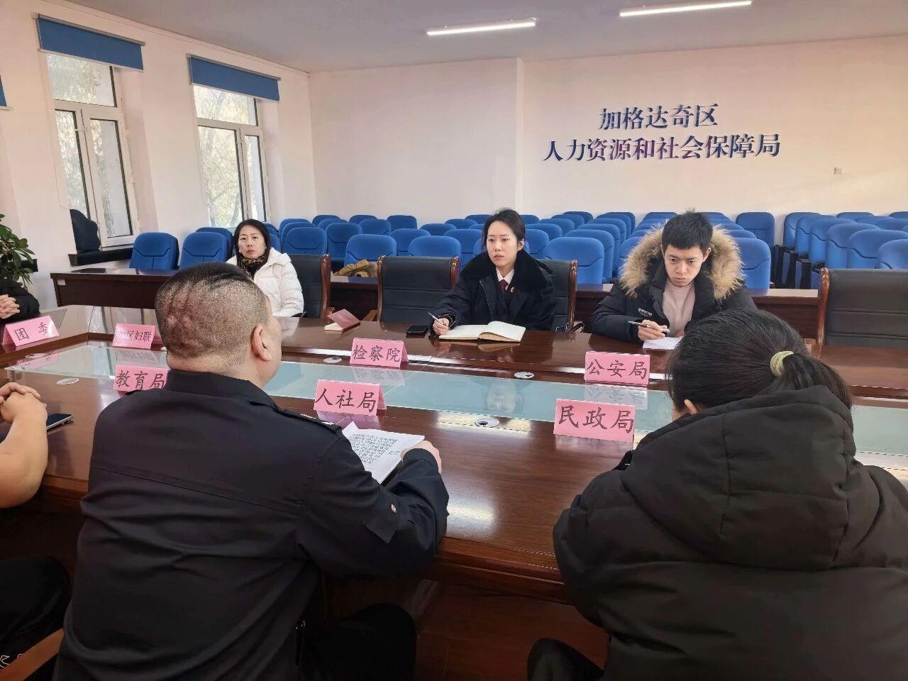 黑龍江經(jīng)濟網(wǎng)訊(朱佳慧)為切實筑牢未成年人保護法治防線,規(guī)范娛樂行業(yè)用工行為,2月6日,大興安嶺加格達奇區(qū)人民檢察院第三檢察部聯(lián)合區(qū)人社局勞動監(jiān)察執(zhí)法辦公室開展專項普法宣傳活動,聚焦轄區(qū)KTV、酒吧等娛樂場所,通過“座談會+實地走訪”的形式,把法治保障送到經(jīng)營一線,為未成年人健康成長保駕護航。