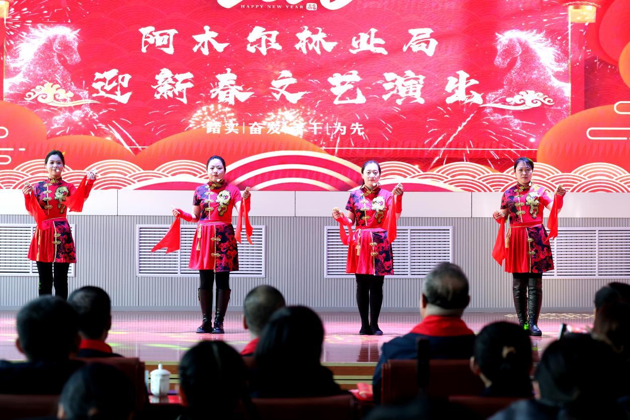 演出伊始,林業(yè)局黨委負(fù)責(zé)人王飛發(fā)表熱情洋溢的致辭,向全體職工及家屬致以新春祝福與誠(chéng)摯問(wèn)候。伴隨著躍馬揚(yáng)鞭、震撼人心的鼓舞《賽馬》,整場(chǎng)演出正式拉開(kāi)帷幕。 歌曲獨(dú)唱、聯(lián)唱飽含深情,《我從草原來(lái)》《越往北越美》《逐夢(mèng)前行》等曲目,唱出林區(qū)人質(zhì)樸赤誠(chéng)的家國(guó)情懷,抒發(fā)熱愛(ài)故土、勇毅擔(dān)當(dāng)?shù)恼鎿辞楦小?/p>