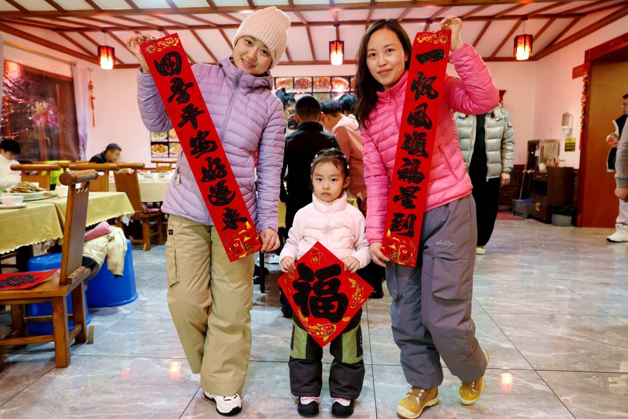 “龍河就是我們在外游客的家?!鳖I(lǐng)隊(duì)派派說,旅游團(tuán)隊(duì)里上至65歲、下至4歲,專程趕來過除夕,大家把驛站當(dāng)故鄉(xiāng),在最北方感受家一般的溫暖?!吧碓谧畋狈剑南迭h中央?!苯K鎮(zhèn)江游客吳麗萍的話語,道出大家共同的心聲。游客們紛紛送上祝福:祝全國人民新年快樂、萬事如意。