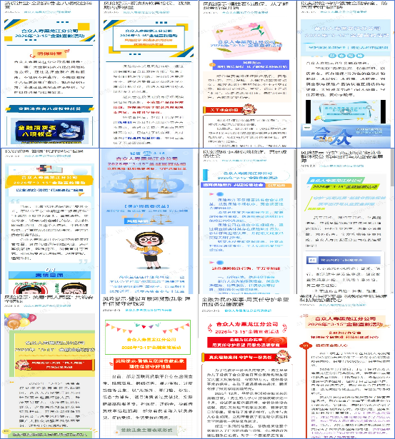 為全面貫徹落實中央經(jīng)濟工作會議、中央金融工作會議精神,深刻把握金融工作政治性、人民性,助力提升社會公眾金融素養(yǎng),幫助社會公眾增強維護自身合法權益的意識和能力。合眾人壽黑龍江分公司按照監(jiān)管部門及總公司有關工作要求,組織所轄各單位同步全面落實開展2026年“3·15”金融消費者權益保護教育宣傳活動。