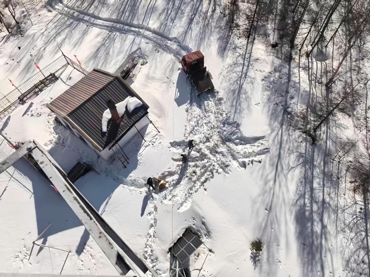 瞭望塔是林區(qū)火情監(jiān)測的“千里眼”,其完好程度直接關(guān)系到火險監(jiān)測的及時性和準確性。受前期降雪影響,施業(yè)區(qū)積雪厚達半米,車輛無法正常通行,給維修工作帶來極大阻礙。為確保檢修工作順利推進,林場啟用集材50運輸車開辟雪中通道。工作人員抵達塔位后,迅速清理塔梯冰層,細致檢查塔身牢固性,對電臺通訊信號進行反復(fù)測試校準。零下十幾度的嚴寒中,工作人員摘下手套操作僅幾分鐘,手指便凍得失去知覺,大家輪換著取暖、交替作業(yè),經(jīng)過一整天連續(xù)奮戰(zhàn),順利完成全部維修任務(wù),瞭望塔恢復(fù)完好狀態(tài),全面具備春季防火使用條件。
