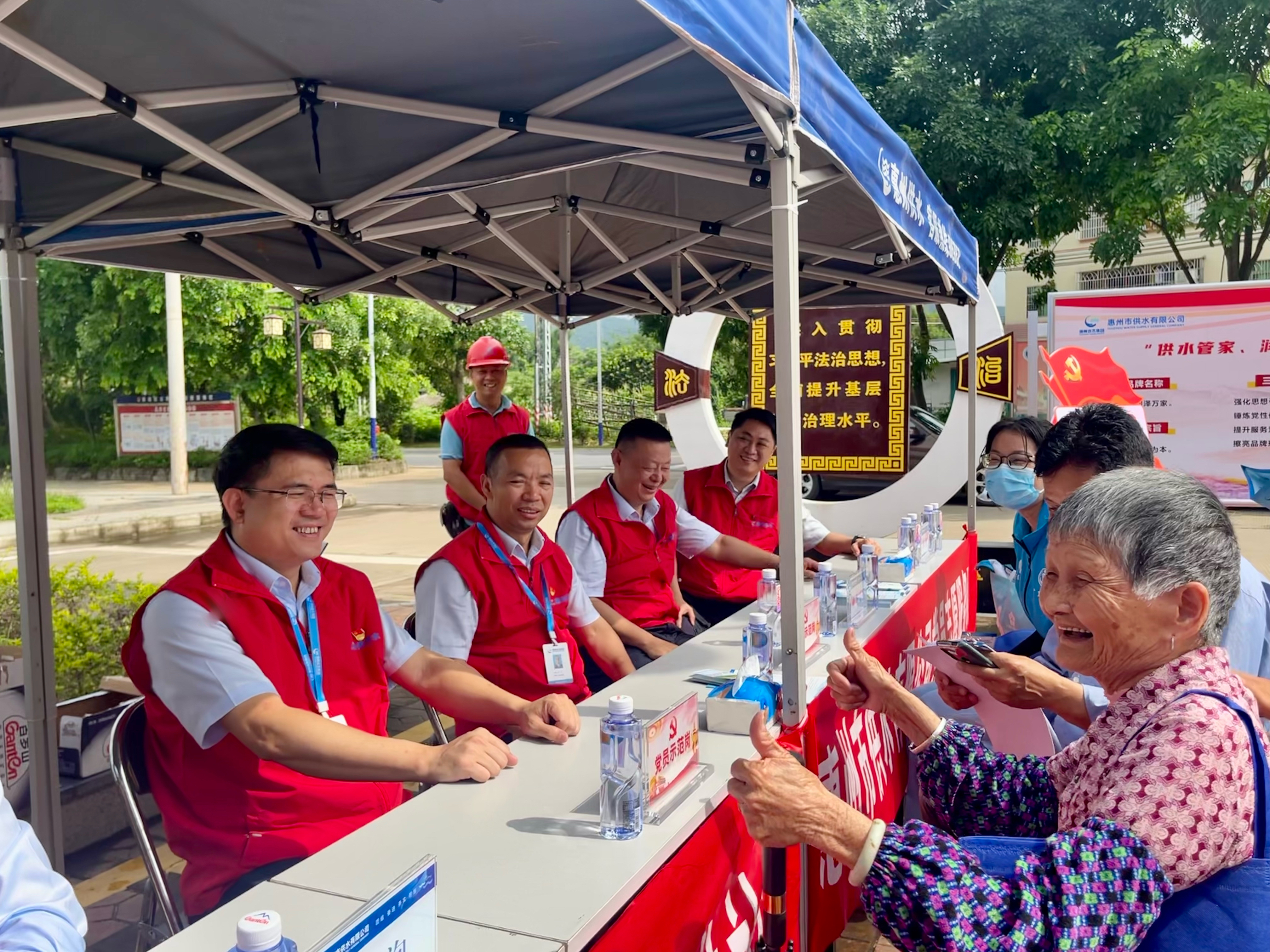 自2022年4月接管汝湖供水市場以來,市供水公司堅(jiān)持以人民為中心的發(fā)展思想,推動黨建與業(yè)務(wù)深度融合,通過接駁汝湖供水管網(wǎng)、實(shí)施舊管網(wǎng)改造等措施,使汝湖片區(qū)的水質(zhì)、水壓得到明顯改善,確保群眾用上安全水、優(yōu)質(zhì)水。為進(jìn)一步了解基層黨建和業(yè)務(wù)工作的開展情況,調(diào)研組一行首先來到汝湖鎮(zhèn)上圍村文體廣場“供水服務(wù)進(jìn)農(nóng)村”活動現(xiàn)場,該項(xiàng)活動是營銷一黨支部踐行“供水管家、潤澤萬家”黨建品牌提供的其中一項(xiàng)暖心服務(wù)?;顒赢?dāng)天,營銷一支部汝湖分公司黨小組與上圍村村委開展結(jié)對共建,結(jié)合“主題黨日”活動,組織供水管家及黨員志愿者走進(jìn)農(nóng)村主動傾聽群眾聲音,向村民科普日常用水常識,提供用水報(bào)裝、管道維修、抄表收費(fèi)等便民服務(wù)。公司領(lǐng)導(dǎo)上前與村民進(jìn)行面對面交流,認(rèn)真聽取意見和建議,耐心解惑釋疑,聽到村民反映因水表殘舊存在用水問題時(shí),立即派人到現(xiàn)場研究解決,督導(dǎo)換表施工作業(yè),收獲了當(dāng)?shù)厝罕姷膹V泛好評。
