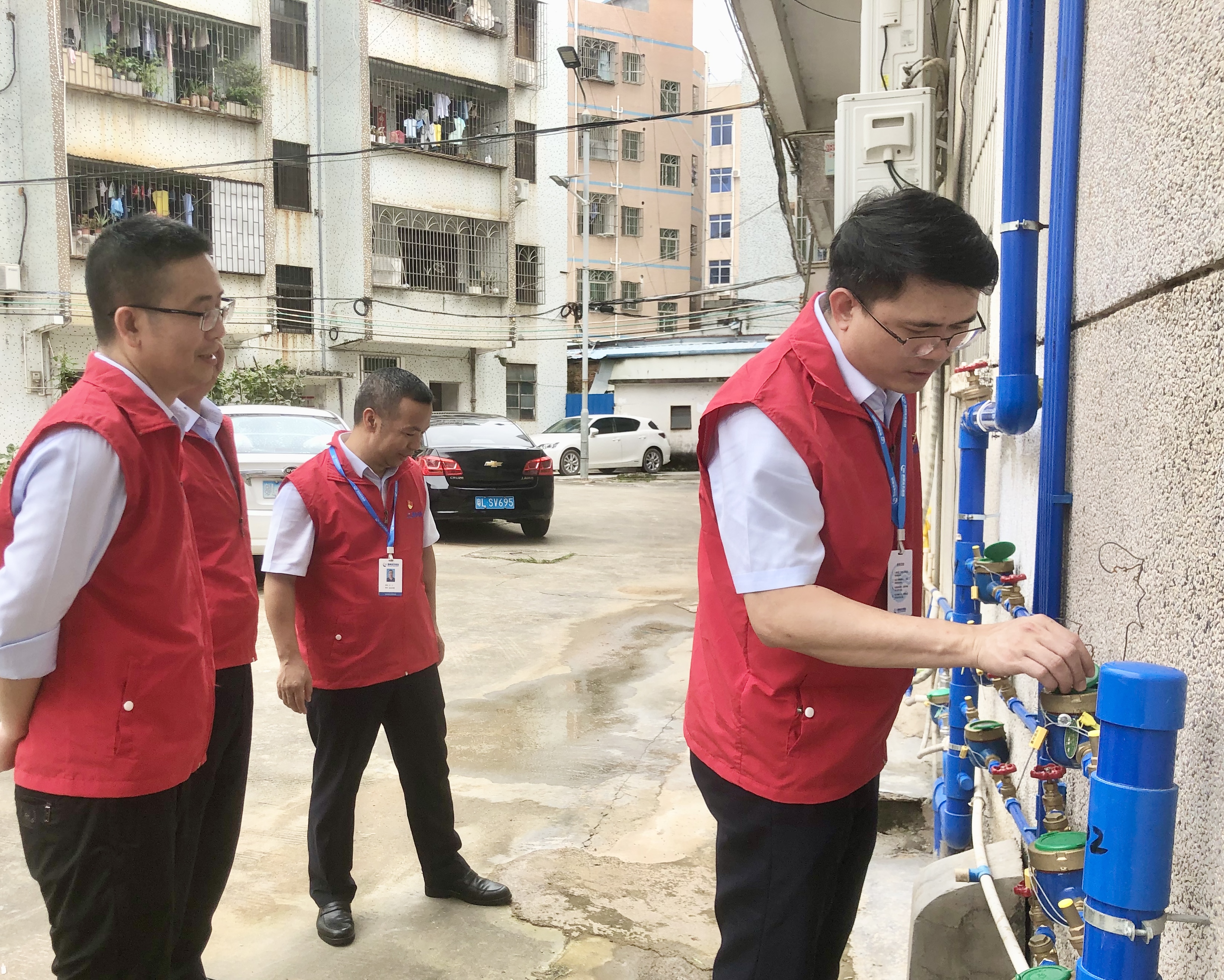 隨后,調(diào)研組實(shí)地觀摩已實(shí)施改管換表的汝湖鎮(zhèn)政府住宅小區(qū)。今年以來市供水公司以點(diǎn)帶面深入推進(jìn)“供水管家、潤澤萬家”黨建品牌創(chuàng)建工作,營銷一黨支部所屬各營業(yè)網(wǎng)點(diǎn)分別組建供水管家隊(duì)伍,與抄表員組成網(wǎng)格服務(wù)員隊(duì)伍,協(xié)同推進(jìn)網(wǎng)格化管理、精細(xì)化服務(wù)。針對汝湖鎮(zhèn)政府住宅小區(qū)長期存在的水壓低、老舊管道引發(fā)水質(zhì)問題多和水表殘舊等狀況,汝湖分公司前置性做好小區(qū)供水情況摸底調(diào)查,及時(shí)推出改管換表方案,僅用一周時(shí)間就完成了整個(gè)小區(qū)改管換表任務(wù),近50戶住戶實(shí)現(xiàn)用水無憂。朱志濤詳細(xì)了解該片區(qū)供水管家隊(duì)伍及網(wǎng)格化服務(wù)分工,認(rèn)真查看改造后的管道及水表運(yùn)行情況,邊調(diào)研、邊梳理,就深入推進(jìn)網(wǎng)格化服務(wù)和供水管家黨建品牌創(chuàng)建工作提出指導(dǎo)意見,要求通過深化黨建品牌創(chuàng)建,形成“全方位、管家式”供水服務(wù)體系,持續(xù)提升服務(wù)質(zhì)量、優(yōu)化營商環(huán)境,助力構(gòu)建共建共治共享的社會治理新格局。